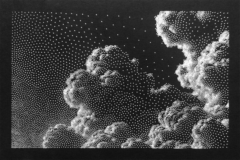 Créations uniques ou tirées en très petites séries, élaborées dans une démarche plutôt expérimentale. Elles prennent vie en utilisant diverses techniques telles que le dessin, la photographie, la linogravure, la table traçante ou la vidéo projection.